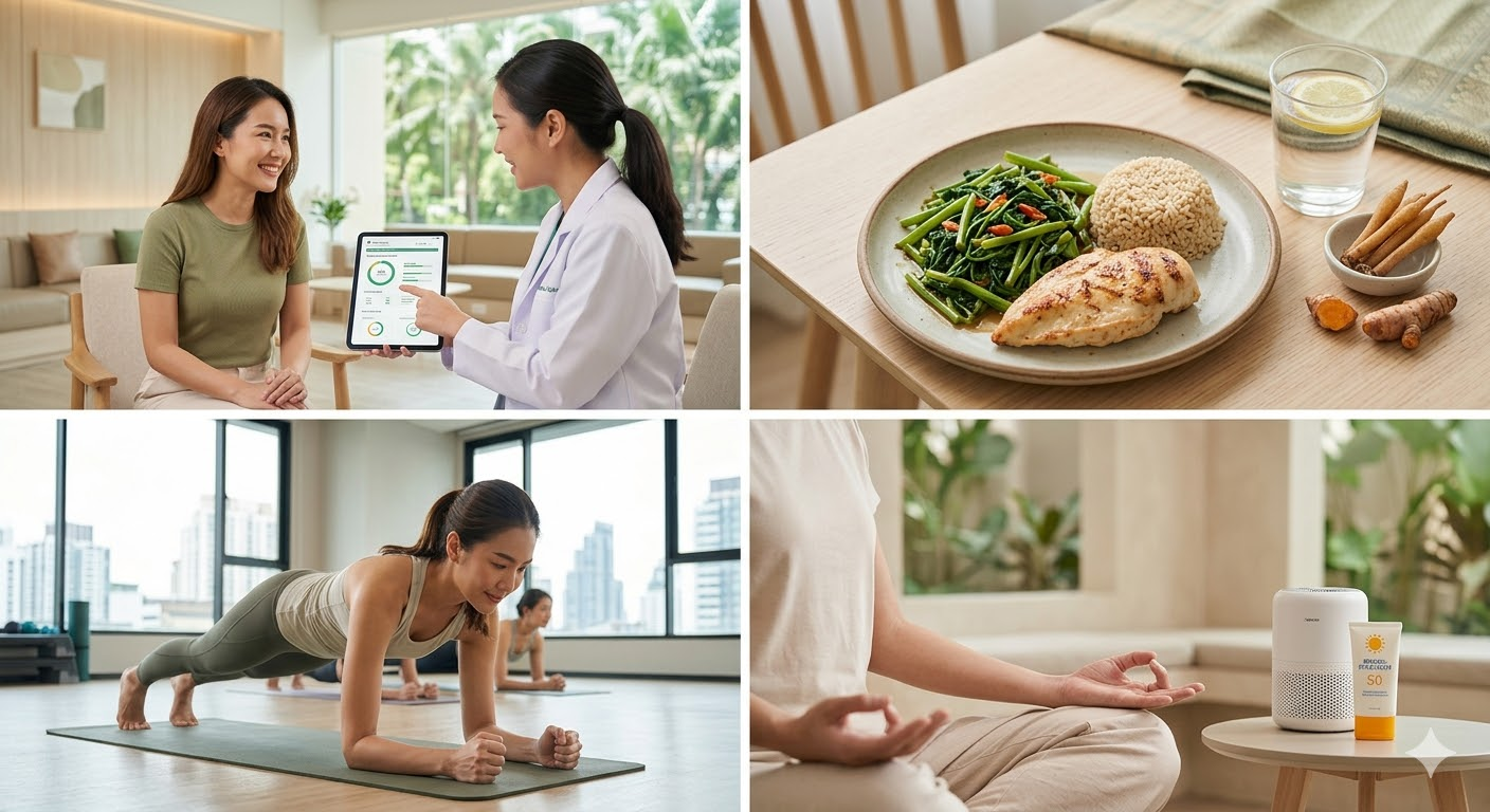 - การป้องกันออฟฟิศซินโดรม: หากคุณทำงานในย่านธุรกิจอย่างสาทรหรือสุขุมวิท "ออฟฟิศซินโดรม" คือศัตรูตัวฉกาจ จัดตาราง 15 นาทีต่อวันเพื่อทำท่าบริหารยืดเหยียด เพิ่มความยืดหยุ่น ลดอาการปวดคอ-หลังเรื้อรัง